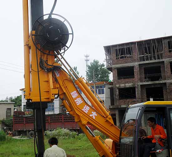 五、钻杆采用双缸(选配双缸四绳)加压,稳定性好,加压力强,换钢丝绳不拆钻杆,维修简单;